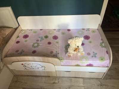 Детская кровать с ортопедическим матрасом, бельевыми ящиками и съемным бортом Длина 164см Ширина 87 см Покупала сыну 3...
