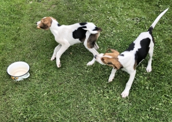 Щенки 1 месяц метисы эстонской гончей черно-подпалого окраса.